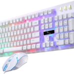 JBJSHHYのゲーミングキーボードとマウスのセット。104キーのメカニカルキーボードは有線で、LEDバックライト搭載。スタイリッシュなホワイトデザイン。