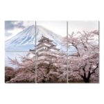 8枚セットの自己粘着防音シート。厚さ1cmで吸音効果があり、騒音や反響音を低減。壁に簡単に取り付け可能。サイズは縦80cm×横120cm。デザインは東京タワーと桜、春の富士山を描いたピンク色で、寝室やオフィスの室内装飾にも最適。