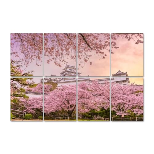 8枚 防音シート 厚さ1cm 自己粘着 吸音材 壁 難燃 日本の姫路市が春の姫路城ですとピンクの桜の枝 花見祭り 防音材 室内装飾 寝室 家 オフィスの壁用吸音パネル 音を吸収・低減、騒音・反響音を消す 取り付け簡単 縦80cm×横120cmの高価買取ITEM
