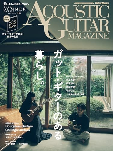 アコースティック・ギター・マガジン 2025年9月号 SUMMER ISSUE Vol.105。特集はガット・ギターのある暮らし。特別付録として歌本小冊子[AGM SONG BOOK Vol.19 ガット・ギターが光る!日本の名曲]付き。