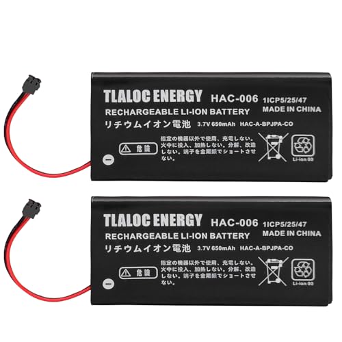 TLALOC ENERGY 2個セットのHAC-006対応バッテリーは、Switchコントローラー用の650mAhリチウムイオン電池です。HAC-015やHAC-016にも対応し、3.7Vで安定したパフォーマンスを提供します。