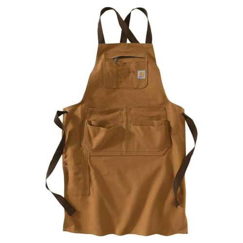[カーハート] ダックエプロンは、耐久性に優れた作業着で、日曜大工やDIY、アウトドアに最適。ユニセックスデザインで、幅広い用途に対応します。茶色のUSモデル、AM6667。