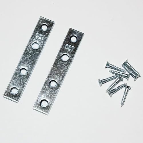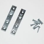 カラーボックス用連結金具の2枚セットです。木ネジ付きで、幅6.8cm、奥行12cmのサイズ。シルバーのカラーで、しっかりとした連結が可能。カラーボックスの安定性向上に役立ちます。