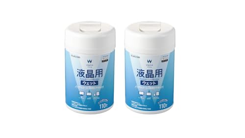 エレコムの液晶用ウェットティッシュ(ノンアルコール)は、帯電防止タイプでパソコンやタブレットの画面清掃に最適。110枚入りの2個セットで便利です。