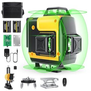FELLATのレーザー墨出し器は、5ラインのグリーンレーザーを使用し、高精度で自動水平補正が可能です。4方向に大矩ライン照射、受光器対応で、屋内外のDIYや測量、建築に最適。日本語説明書付き。