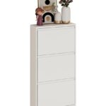 JAVRON シューズラック スリム 斜め置き シューズボックス 下駄箱 薄型 完成品 スチール製 奥行き15.2cm シューズラック省スペース マンション 靴収納 タオル収納 玄関 洗面所 脱衣場 (ホワイト, 3段·655*152*1033mm) 高価買取中