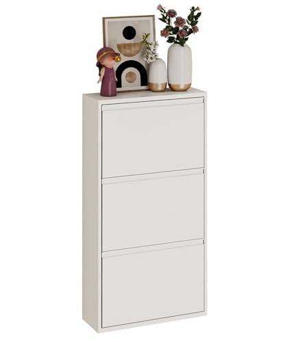 JAVRON シューズラック スリム 斜め置き シューズボックス 下駄箱 薄型 完成品 スチール製 奥行き15.2cm シューズラック省スペース マンション 靴収納 タオル収納 玄関 洗面所 脱衣場 (ホワイト, 3段·655*152*1033mm)の製品情報