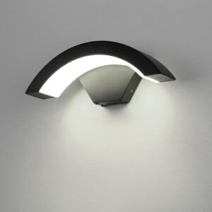 Quirixの防水ブラケットライトはLEDガーデン照明で、モダンなデザイン。IP65の防雨型で屋外・屋内兼用、工事が必要。7Wまたは12Wのウォームホワイト光源、ブラック仕上げ。