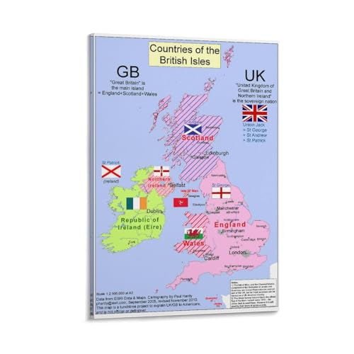 イギリス地図ポスターアートワークキャンバス絵画 部屋飾り キャンバスウォール 壁の絵 壁掛け ホームアートワーク12x18inch(30x45cm)の製品情報
