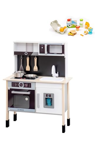 RiZKiZ BOSCH おままごとキッチンは、ミニサイズの木製キッチンセット。製氷機付きで音と光の演出。3歳以上の子供向けで、料理やごっこ遊びに最適なコンパクトな知育玩具です。