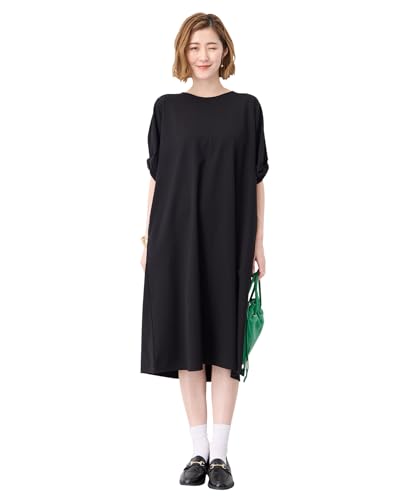 プチオンフルールのねじりスリーブカノコワンピース(レディース525217)は、シックな黒色が特徴。カノコ素材で快適な着心地を提供し、ねじりデザインのスリーブがトレンド感を演出。カジュアルにもフォーマルにも合わせやすいアイテムです。