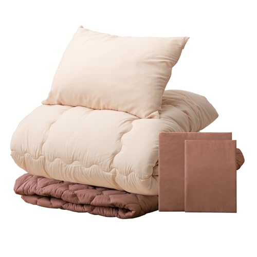タンスのゲンの布団セットはセミダブルサイズで、6点セットです。敷パッド一体型のボックスシーツは洗える上、抗菌・防臭・防カビ効果があります。