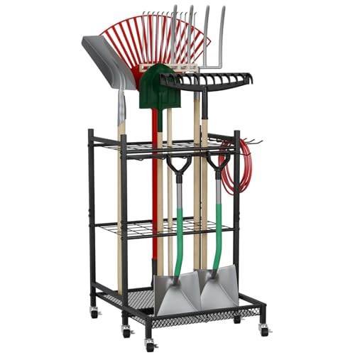 HEEOREV ガーデンツールオーガナイザー ガーデニング 棚 収納 ラック (86x55x78cm)掃除用具 収納 キャスター付き 移動が容易 掃除道具 農具 収納 多機能倉庫 ガレージ、物置、地下室に最適 (ブラック)の高価買取