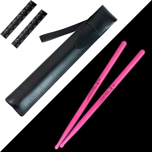 AQTAQ 5A ドラムスティックは、ナイロン製で滑り止めハンドル付き。ナイトライト効果のあるクールグロー機能搭載。強力で楽器やパーカッション用に最適なピンクのスティックです。