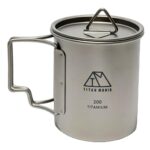 TITAN MANIAのチタン製マグカップは、300ml/450ml/750mlの3点セットで、超軽量で持ち運びに便利。折りたたみハンドル、蓋付きで全サイズスタッキング可能。直火使用や錆びない特性があり、キャンプやアウトドアに最適。収納袋付き。