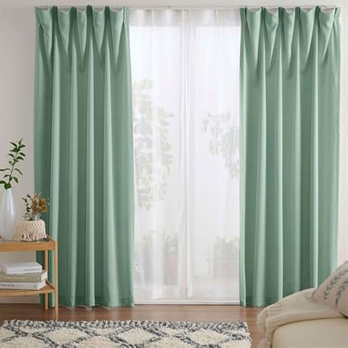 ベルーナの遮光カーテン2枚セットは、シンプルでおしゃれなデザイン。無地で北欧風、タッセルとアジャスターフック付き。洗えるため新生活や一人暮らし、引っ越しに最適です。