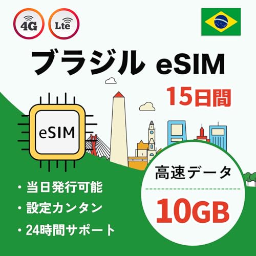 【ブラジルeSIM】15日間10GB 高速通信|アルゼンチン コスタリカ チリ エクアドル ペルー ウルグアイも利用可能|データ通信専用 4G-LTE対応|即日発行可|説明書付き|LINEで24時間サポート (15日間 10GB) 高価買取中