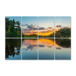 8枚の防音シートは厚さ1cmの自己粘着タイプで、音を吸収・低減します。青い空と濃い緑の松林をデザインし、寝室やオフィスの壁に最適。簡単に取り付け可能で、サイズは縦80cm×横120cmです。