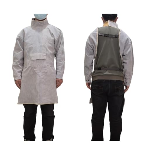 POERDSの溶接エプロンは、牛革製で耐熱性と防炎性を備えた作業用防護服。ツールポケット付きで、電気溶接にも対応。サイズは85cmの白色ハイネックデザインで、耐久性も優れています。