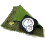 Flatlandの爬虫類床材マットと温湿度計2点セットです。レオパやリクガメ、カナヘビ、両生類の飼育用に最適。保温・保湿効果があり、室温や湿度を正確に測定できます。サイズは20×20cm、色はグリーンです。