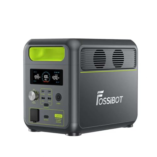 FOSSiBOT F1200は、大容量1024Wh、AC1200W高出力のポータブル電源。瞬間最大2400W、UPS機能搭載で、8台同時充電可能。軽量・コンパクトでキャンプや非常時に最適。15年の長寿命、7年保証。