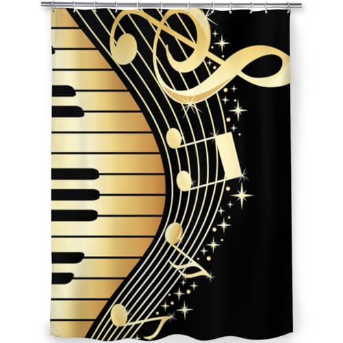 防水の音符柄・ピアノ柄のシャワーカーテンです。サイズは152cm×183cmで、バスルームのプライバシーを保護し、インテリアとしても優れています。カーテンリング付きで取り付けも簡単!
