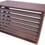 GEBYUIのアルミ合金製エアコン室外機カバーは、軽量で耐久性に優れ、ルーバー付きの植物棚機能も搭載。コーヒー色で、バルコニーやガーデンに最適。サイズは100×70×50cm、3面タイプです。