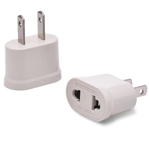 MAEXUSの電源変換プラグ2個セットは、CタイプからAタイプへの変換に対応。10A、110-250Vで高互換性。小型設計で携帯に便利。海外旅行や国内利用に最適なホワイトのプラグです。