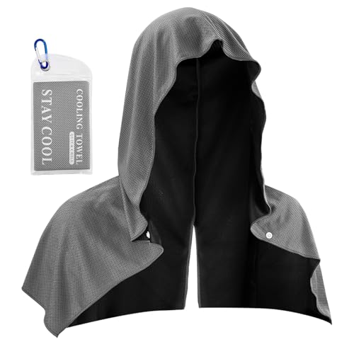冷却パーカータオルは、瞬時に冷却し、UPF50の日焼け止め機能を搭載。暑い季節のスポーツやキャンプに最適なディープグレーのアイスタオルです。