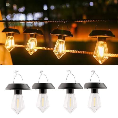 防水ソーラーランタン4個セット。おしゃれなLEDランタンで、太陽光パネルで充電。自動点灯・消灯機能搭載。キャンプやガーデン、ベランダに最適。フック付きで携帯便利。