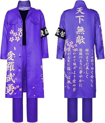 特攻服「天下無敵」スタイルの暴走族コスプレ衣装。ハロウィンやパーティー、文化祭、撮影用に最適。男女兼用でパープル、サイズXL。個性的な演出が楽しめます。