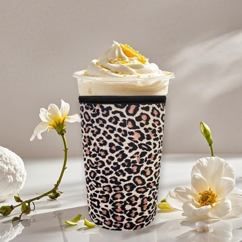 ヒョウ柄のアイスコーヒーカップスリーブは、保温・保冷効果に優れたデザイン。滑り止め付きで持ちやすく、おしゃれなカフェスタイルを演出。耐久性のある素材で、繰り返し使用可能。