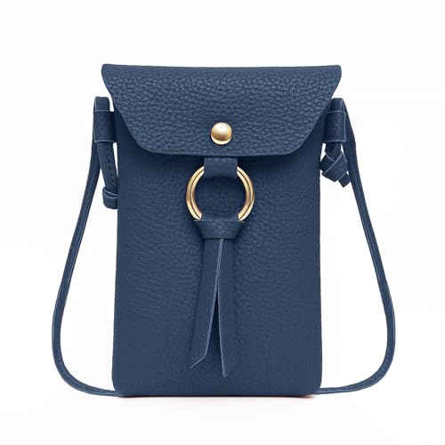 女性用のクロスボディフォンバッグ。小型のショルダーバッグとして、ミニ携帯電話や財布を収納可能。旅行やショッピングに最適なデザイン。色はブルー、サイズはSでモダンなスタイル。