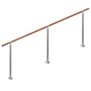 YHEYSMUX 200 cm 屋内 屋外 階段 手すり 茶色 無垢材の手摺り ブナ丸棒 304ステンレス鋼 DIY 玄関 廊下 庭 角度調整可能 簡単な取り付け 外径35 mm 銀