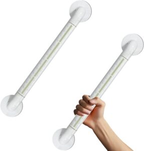 【最新アップグレード】60CM 風呂 手すり、2個セット 浴槽手すり トイレ用手すり、浴室 立ち上がり補助 耐荷重150kg 取っ手 滑り止め 転倒防止 静電防止 夜光 穴あけ必要 老人、身体障害者、負傷者、手術後の人に適しています ステンレスチューブ+抗菌ナイロン素材(35mmチューブ ホワイト 60CM )