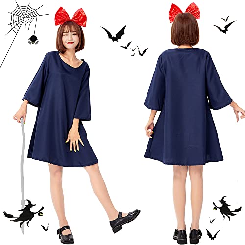 Lifoxan まじょっ子ワンピ キキ風のコスプレワンピース。ハロウィンや文化祭、舞台演出にも最適な大人用女性用の魔女の宅配屋さんスタイル。カラーはブルー。