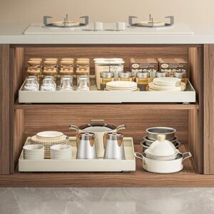 GUOOL 2段シンクオーガナイザー 引き出し式キャビネットオーガナイザー 金属製スライド式引き出し バスルームキッチンオーガナイザー カウンタートップキッチン用, L