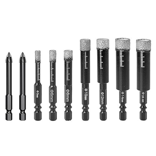 ダイヤモンドホールソーは、乾燥した穴あけに最適な工具です。ろう付けされたダイヤモンド付きで、9本のサイズ(3mm/4mm/5mm/6mm/8mm/10mm/12mm/14mm/16mm)があり、大理石、ガラス、陶磁器、タイルに対応しています。