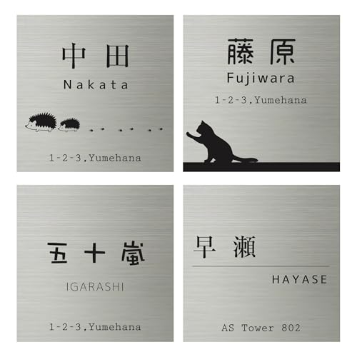 Anvisの表札プレートは、マグネットと両面テープ付きで簡単に貼り付け可能。日本製のアクリル製でおしゃれなステンレス調デザイン。サイズは100mm×100mm、防水仕様で屋外使用に最適。戸建てやマンションの玄関、郵便受けにおすすめ。