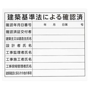 シンワ測定(Shinwa Sokutei) 法令許可票「建築基準法による確認済」プラダン 31×37cm 横 79063