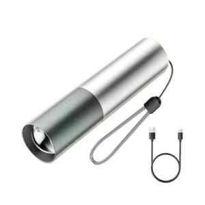 ミニ懐中電灯 強力 防災 Type-C充電式 3モード調光 ズーム式 軽量 高輝度LED ハンディライト コンパクト 登山 夜釣り 夜間訓練 作業用 電対策 緊急用 紛失予防 停電対策 (グレー)