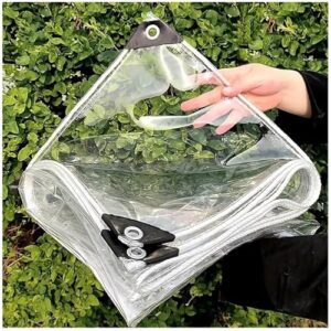 JIOHBC 透明 PVC 防水シート 透湿 UV カット 防雨防風防塵 引き裂き抵抗 保護ロープ付き 家庭・業務・園芸用 テラス・車・植物保護 花粉症対策 厚さ0.35mm-0.6x2M
