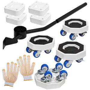 Socpuro 家具移動 キャスター 家具移動ヘルパー 360度回転 ABS素材 ストッパー機能付 二層設計 安定性 耐荷重400kg 冷蔵庫 洗濯機 大型家電 移動キャスター 台車+省力レバー+手袋 移動キャリー セット 軽がるキャリー ドーリー