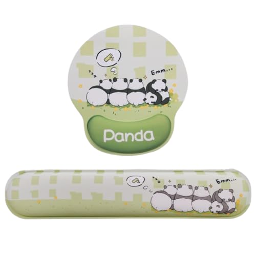 かわいいパンダデザインのマウスパッドリストレストセット。低反発クッションで手首を支え、疲労軽減。大型サイズでゲーミングやオフィスに最適。滑り止め加工も施されており、しっかりとした安定感を提供します。