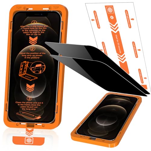 iPhone 12 Pro Max用覗き見防止ガラスフィルム2枚セット。滑らかな手触り、簡単貼り付け、指紋認証対応。9H越えの強度、飛散防止、プライバシー保護、ガイド枠付きで気泡レス。