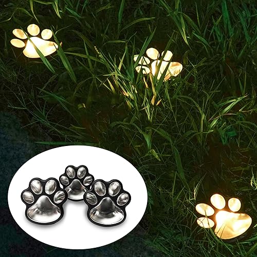 【3個入り】犬猫の足型ソーラーライト。埋め込み式で自動点灯、IP44防水。暖色光が可愛い肉球デザイン。庭や玄関先に最適、配線不要の省エネ製品。