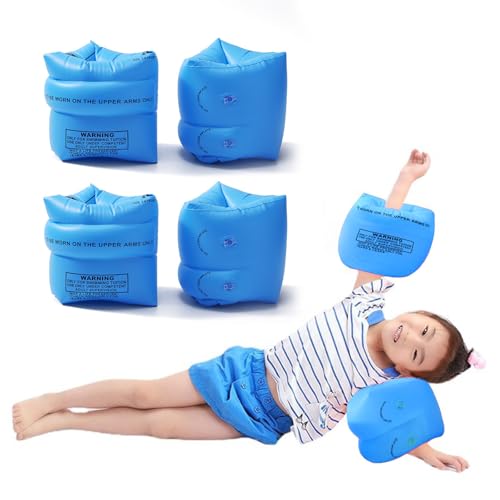 子供用・大人用の4個セット浮き輪。90kg未満の強い浮力で、水泳補助や練習用具に最適。水遊びや海水浴、川プールに使える男女兼用水泳用品。色はブルー。