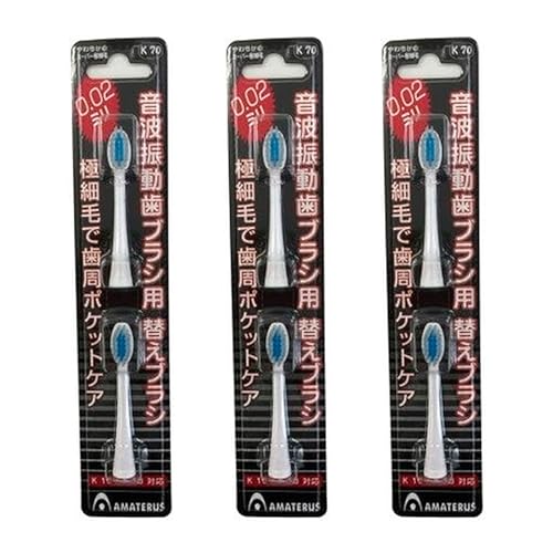 AMATERUS アマテラス 音波振動ハブラシ用替えブラシ K70 2本入りの3セット(合計6本)。音波振動技術で効果的な歯磨きをサポートし、口腔ケアを向上させる高品質ブラシです。