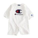 チャンピオンのミニカバーオール ビッグロゴサガラは、ベビー用オフホワイトカラーで、サイズ60-70です。柔らかい生地で快適な着心地を提供し、デザインには大きなロゴ刺繍が施されています。
