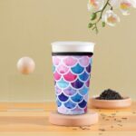 再利用可能なアイスコーヒーカップスリーブ。22~24オンスのホットコールドドリンク対応のネオプレン製。優れた断熱効果で、冷たい飲み物をしっかり保持します。デザインは(M波形)で、スタイリッシュさも兼ね備えています。